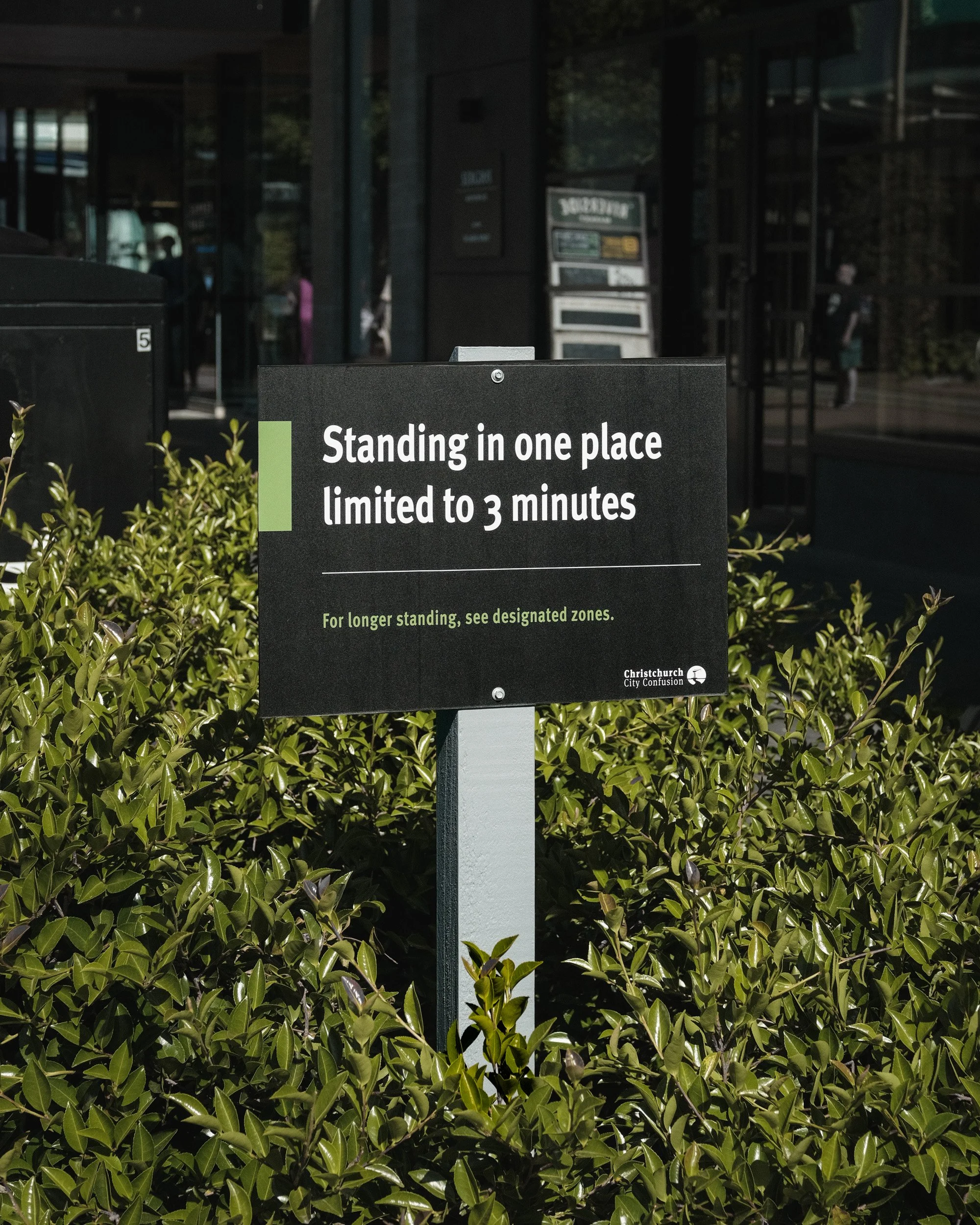 Signs. The signs are everywhere, literally. Signs are so ubiquitous throughout the urban environment, they become almost invisible. We no longer read them, instead relying on our semiotic understanding to make assumptions about their messaging and instructions. Not only are signs symbolic of the highly controlled nature of our urban environments, they also reveal much about our behaviour, expectations and performance in public spaces. It is upon closer inspection that we can see the fascinating juxtaposition of signage that plays out across the city - arrows in all directions, highly specific information and vaguely insufficient dictums, signs that reveal public contracts and private control, dos and don’ts, stories and statements… Cameron Hunt’s surprising pieces, hidden in plain sight, playfully riff on this reality, combining absurdity and subtlety, leaving us to question our surroundings.