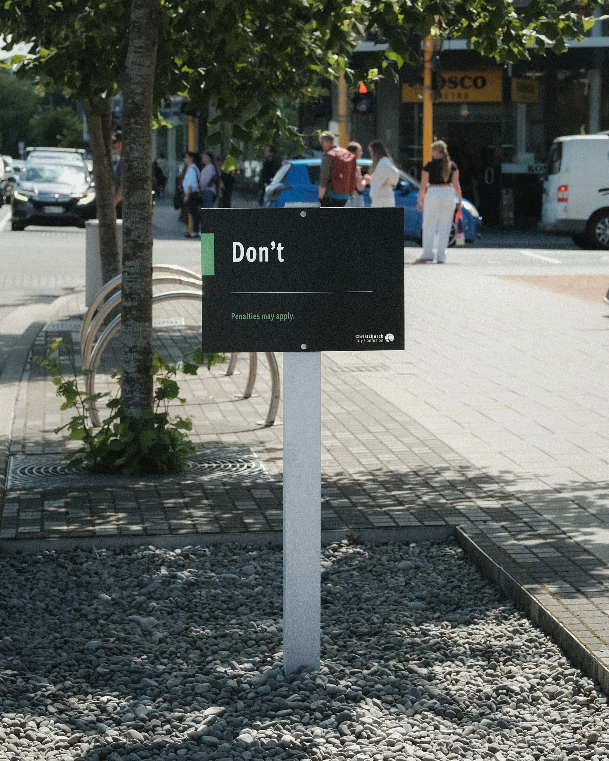 Installed as temporary signs, the works have the appearance of official signage, utilsing the aesthetic of authority with the language of the absurd. They will be installed on different days, encouraging people to keep their eyes open for new additions.